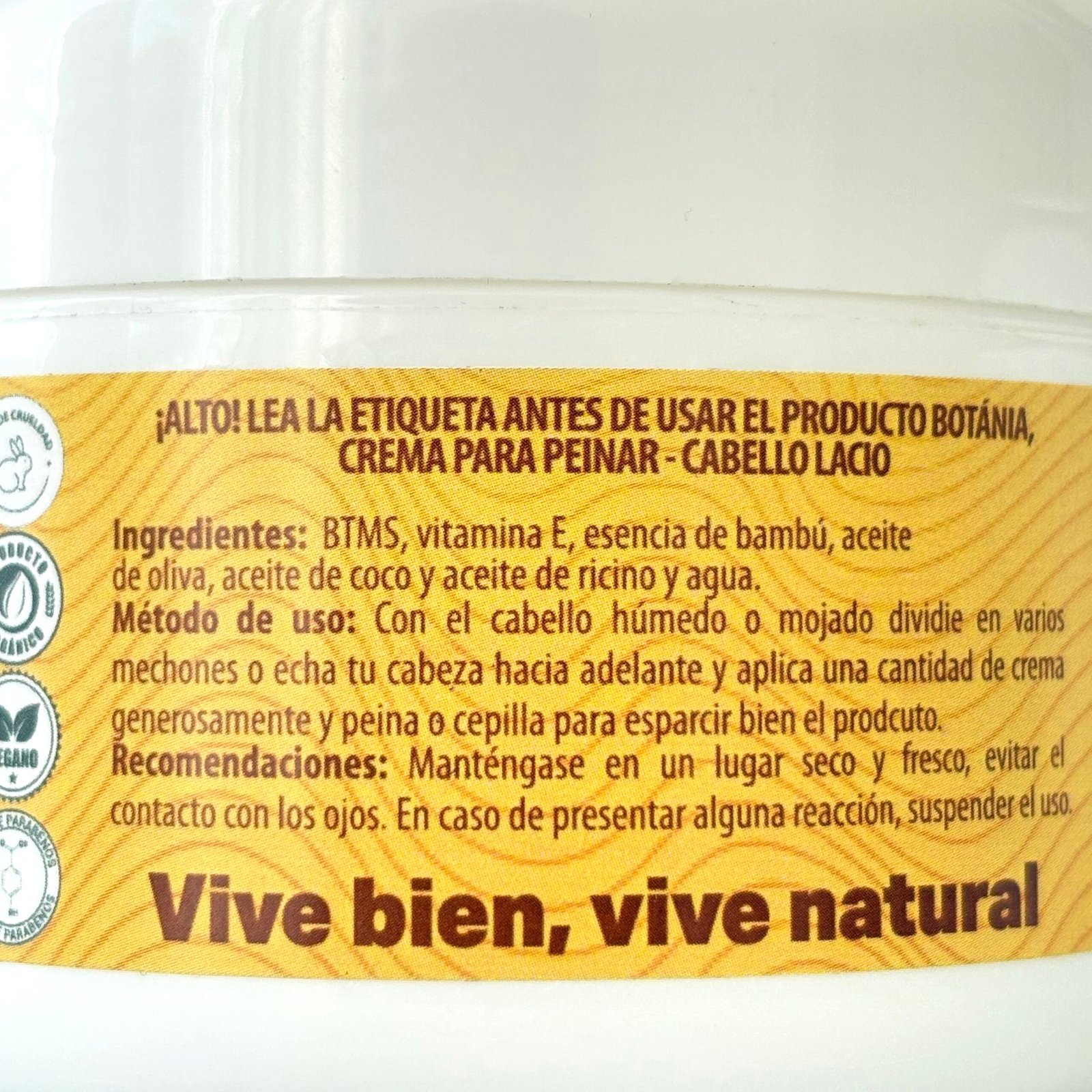 RIZADO: BTMS, vitamina E, esencia de bambú, aceite de oliva, aceite de coco, aceite de ricino y agua.